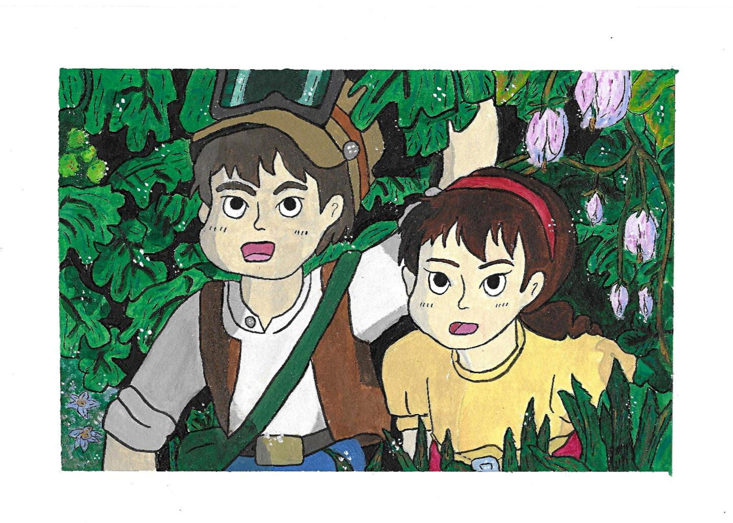 DIMENSIONS: 7" x 10"Inspired by the 1986 film created by Japanese director Hayao Miyazaki, Castle in the Sky. The shading of the scenery and style of the character's facial structure are based off of the style I'm devloping.