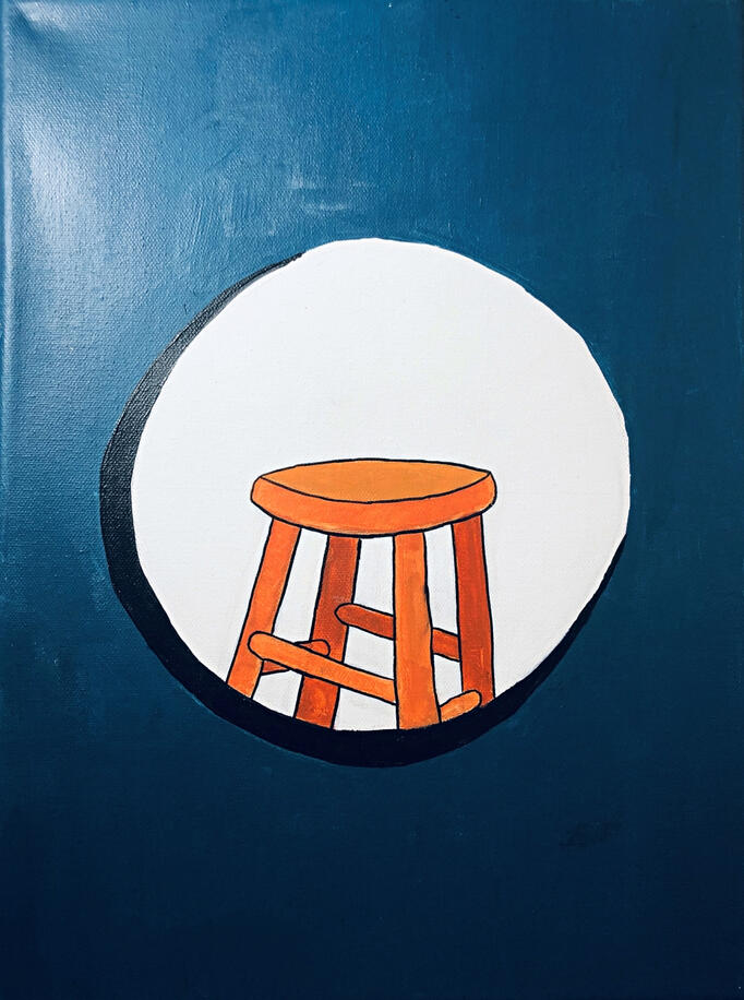 DIMENSIONS: 20" x 12"Turned in for an assignment. The prompt was spotlight and I wanted my piece to be relatable. The empty stool resembles a platform that everybody has access to, being able to place anything on top and directly in the spotlight.